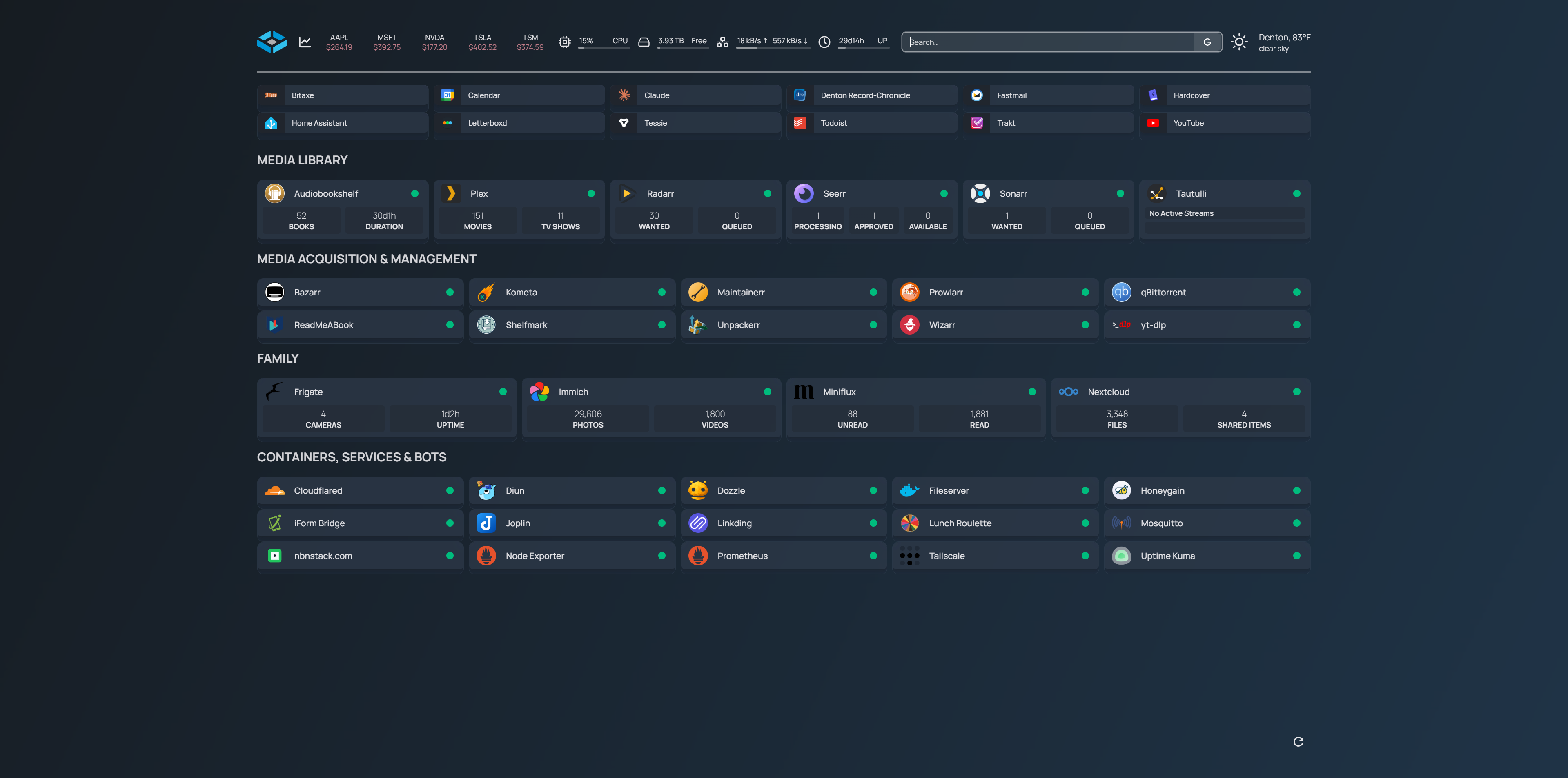 - Homepage: Custom dashboard providing unified interface for all services